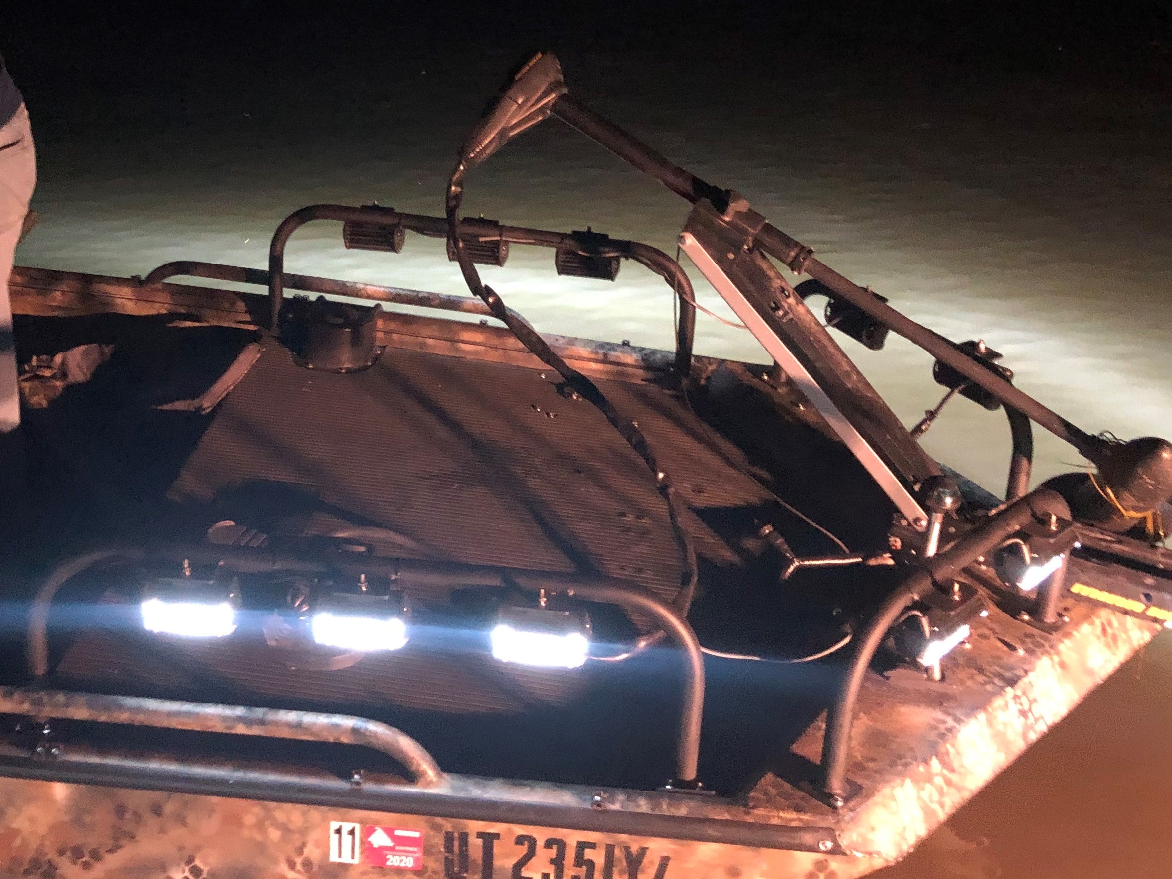 The package comes with (2) T-rail mounted bars, (2) Riv-Nut mounted bars, (10) 72 Watt LED lights. The lights can be switched from cool white, to warm white depending on your water clarity. The lights come pre-wired with quick disconnect terminals, and alligator clips for your battery.
